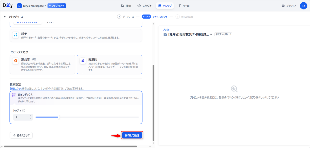 ワークフロー(ベルトコンベア)を作る前に、AIの頭脳となる「自社の資料」をDifyに覚えさせます。これを「ナレッジ」と呼びます。
