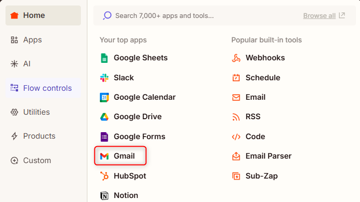 1.「Trigger」をクリックし、「Gmail」を選択。