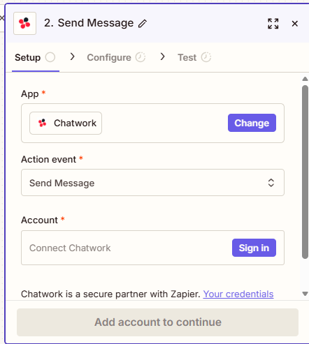 ステップ4: Chatworkに通知する動作を追加