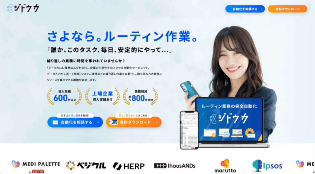 ジドウカは、これまで合計800タスク以上の業務の自動化をしてきた実績のある法人専用の自動化サービスです。