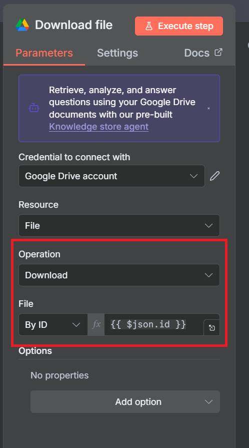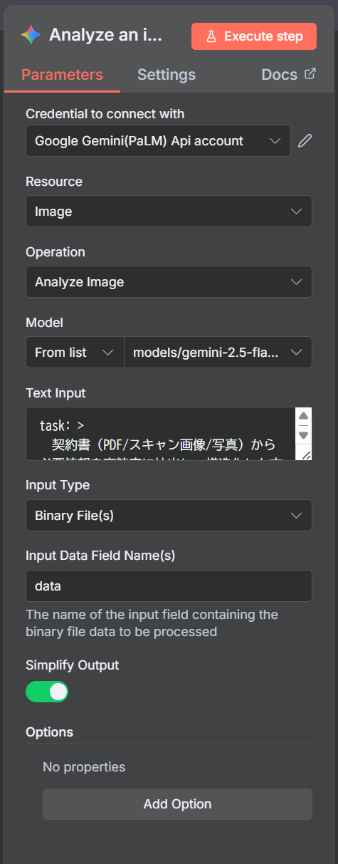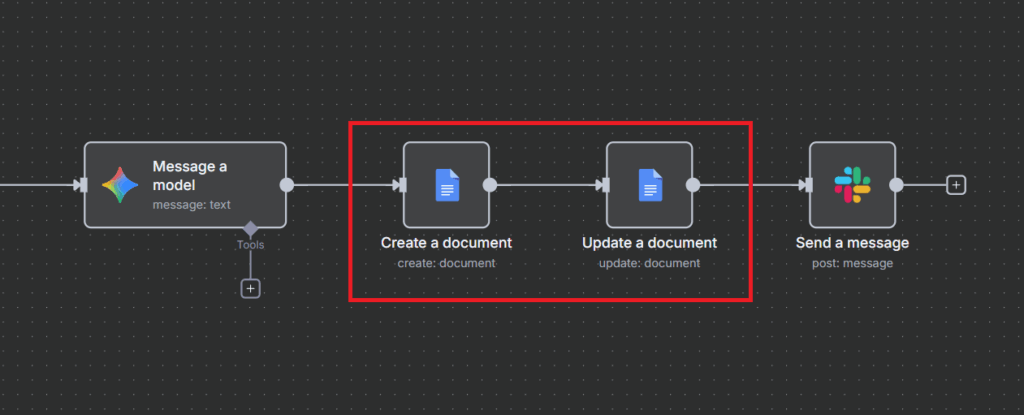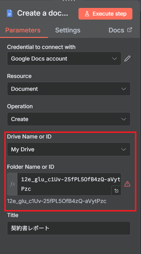 Step 4:Google Docsノードの設定(ファイル生成~アップデート)