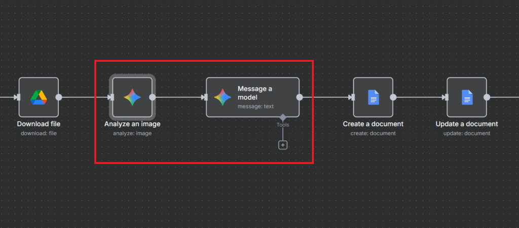 4-1. ファイル生成~アップデートを実施するGoogle Docsノード設定を確認する。