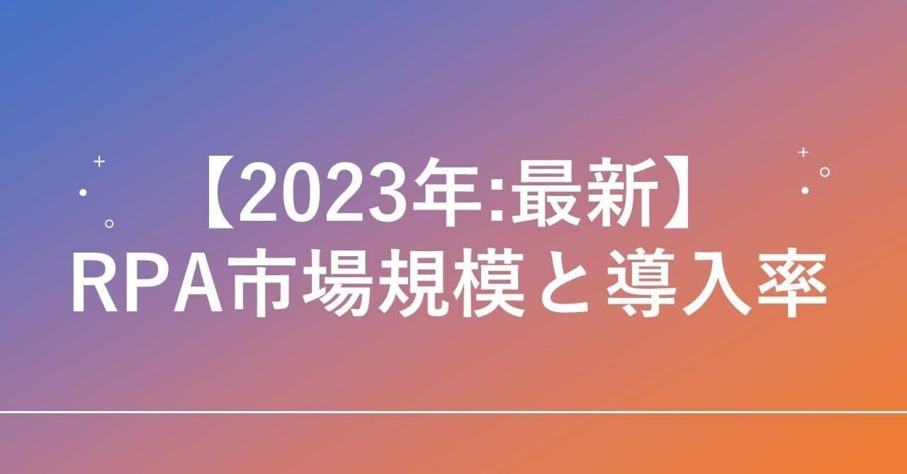 あわせて読みたい 【RPA虎の巻】RPAの市場動向と、ツール選定時の顧客意図を紐解く! ビジネスの自動化を進めるための手段として注目を集めているRPA。RPAを導入する際は、市場動向の把握やビジネスに適したツールを選定することが重要です。今回は業界別のツ...ITトレンド 【2025年版】RPAの市場規模!急成長の実態と背景を調査 RPAの国内市場規模は年々拡大し続けています。スターティアレイズ株式会社が2023年12月に行った調査によると、国内企業のRPA導入率は14.16%でした。大企業で24.78%、中小企...