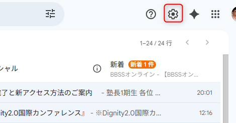 画面右上の「設定」(歯車アイコン)をクリックし、「すべての設定を表示」を選びます。