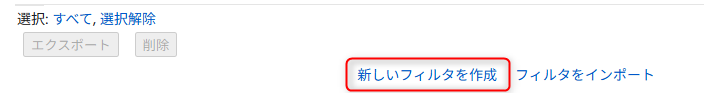 画面下部の「新しいフィルタを作成」ボタンをクリックします。