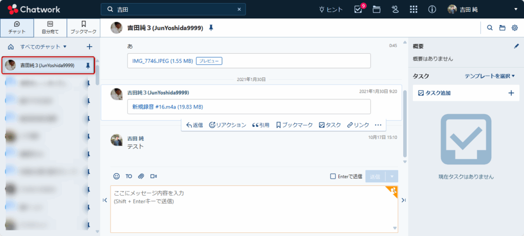 chatwork.com を開き、Chatworkアカウントでログインします。左側のチャットリストから、転送したいグループ(例: #sales-team)または個人アカウントを選び、名前をメモ帳に書き留めます。