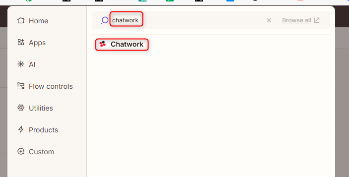 検索ボックスに「Chatwork」と入力 → 表示された「Chatwork」をクリック → 「Continue」をクリック。
